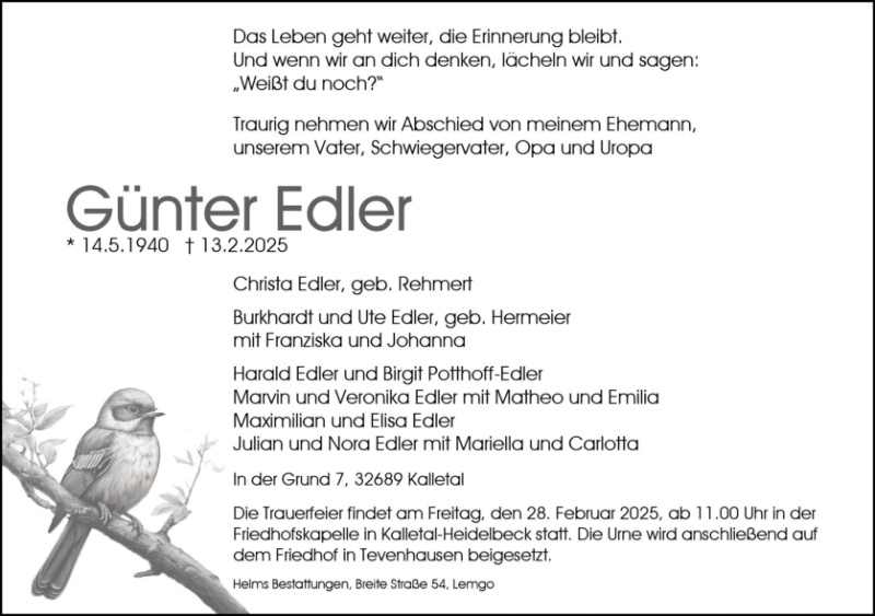 in diesen Tagen fühlen wir mit Ihnen und wünschen Ihnen von Herzen, dass Sie aus den glücklichen Erinnerungen Kraft schöpfen, um positiv in die Zukunft zu gehen. Diese Gedenkseite möge Ihnen dabei helfen, Ihre Trauer zu teilen und das Andenken gemeinsam wachzuhalten.