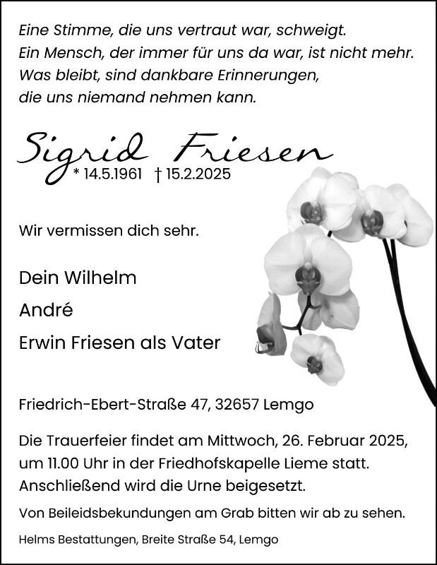 wir wünschen Ihnen für die kommende Zeit viel Kraft und dass es Ihnen gelingt, dankbar auf die positiven Erinnerungen zurückzublicken. Diese Gedenkseite möge Ihnen dabei helfen, Ihre Trauer zu teilen und das Andenken gemeinsam wachzuhalten.